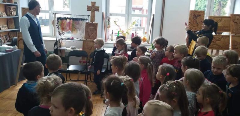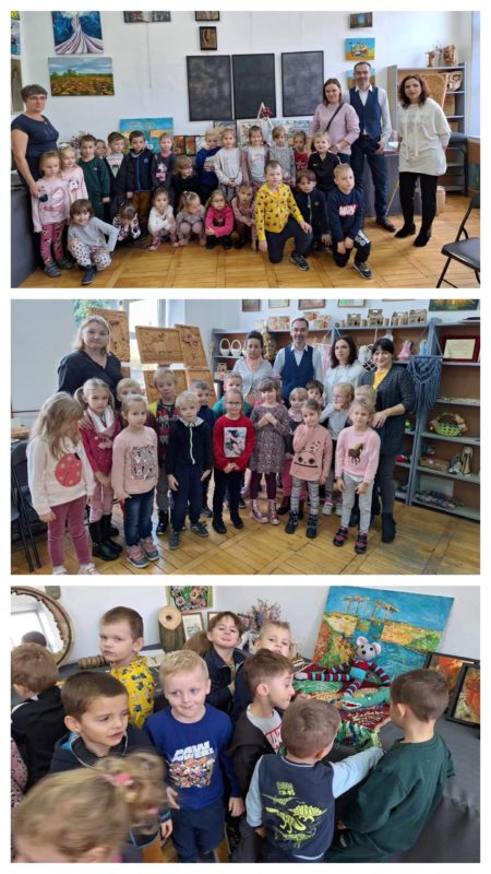 W ramach projektu „Z folklorem dzieci odkrywają swoje dziedzictwo kulturowe” dzieci z grupy V „Chochliki” oraz grupy III „Tropiciele” wybrały się do Galerii Sztuki w Lubaczowie. Przedszkolaków przywitali członkowie Stowarzyszenia Twórców Sztuki Ziemi Lubaczowskiej: prezes stowarzyszenia Pan Robert Kryla oraz Pani Dorota Rokosz. Celem wizyty było propagowanie regionalnej tradycji. Prace artystów cieszyły się dużym zainteresowaniem. Dzieci z zachwytem podziwiały prace regionalnych twórców.