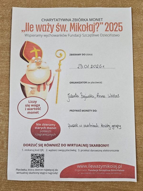 Każda moneta dorzucona do puszki to pomoc w zapewnieniu wsparcia, edukacji i opieki dzieciom, które tego potrzebują.