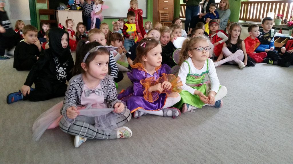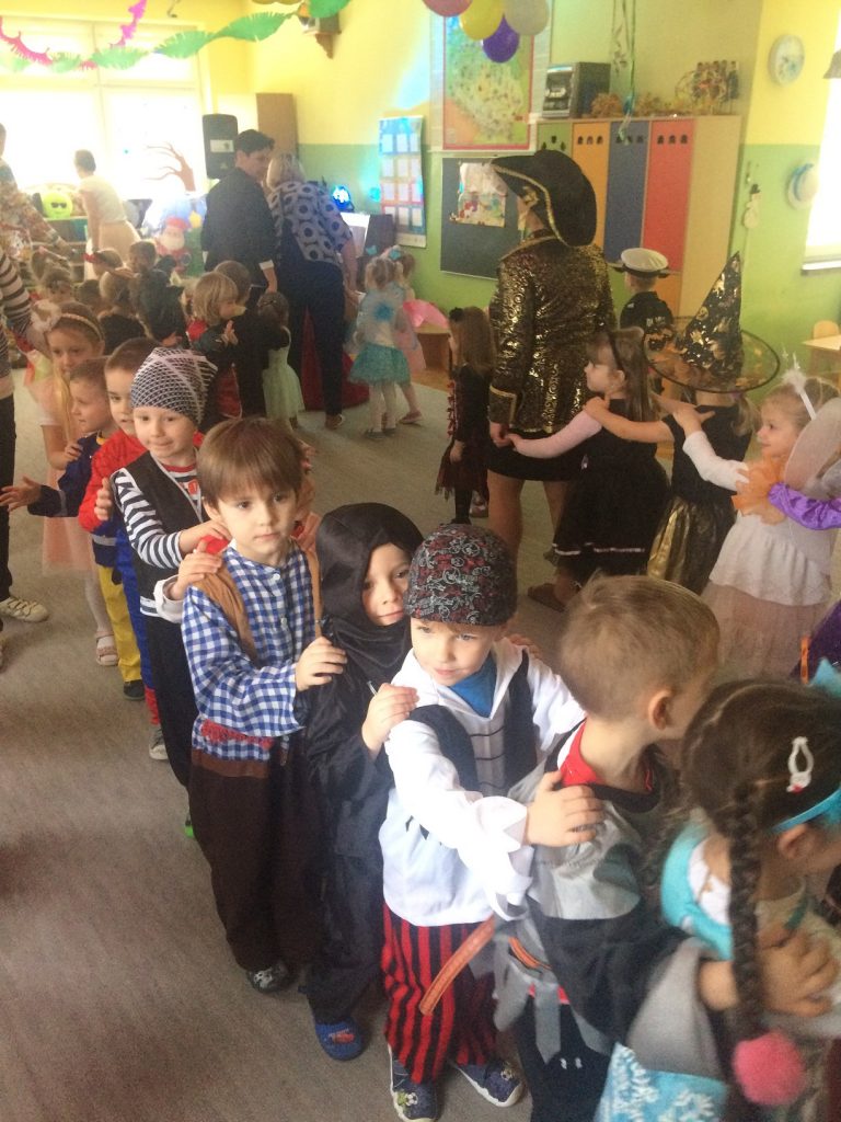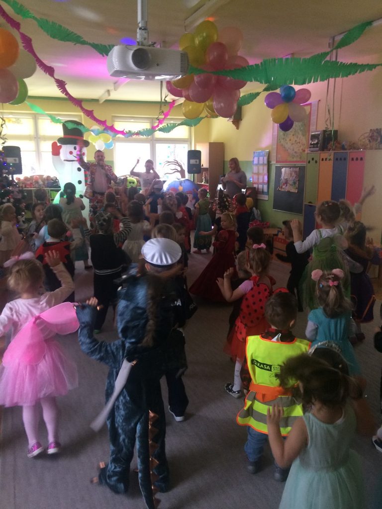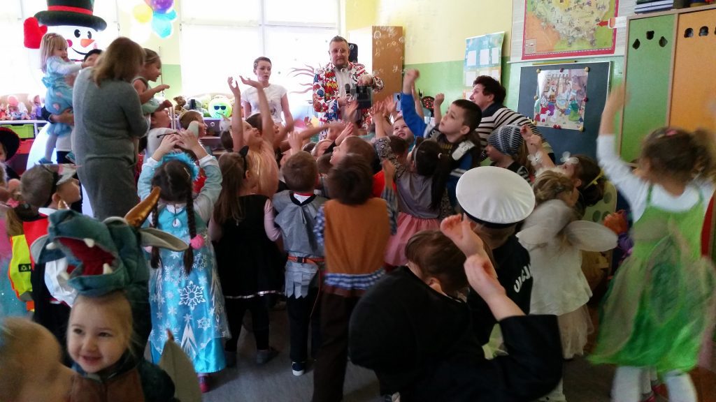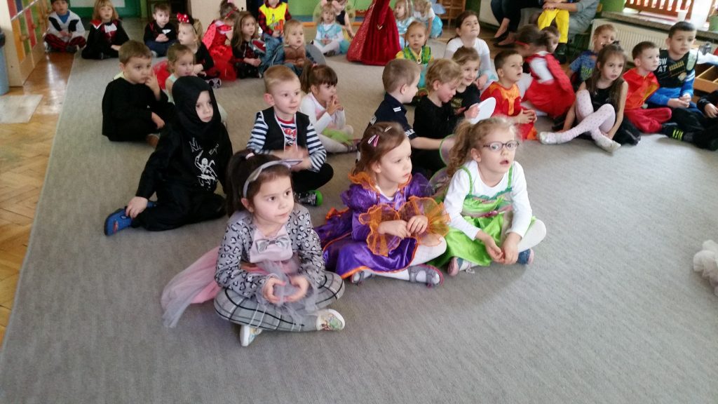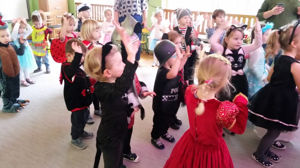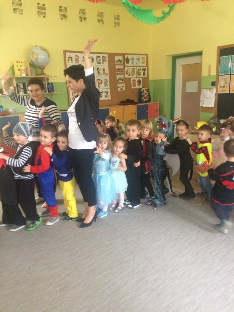 Zgodnie z wcześniejszą zapowiedzią dzisiaj odbył się bal karnawałowy. Stroje dzieci były pomysłowe, kolorowe i oddawały charakter przedszkolnej zabawy. Wodzirej „dwoił się i troił”, aby dzieci dobrze się bawiły, miały wspaniałe humory, wykazały się umiejętnością tańców, znajomością bajek. Wybrano w starszych i młodszych oddziałach króla i królową balu, a kto nimi został, dzieci pochwalą się w domu…