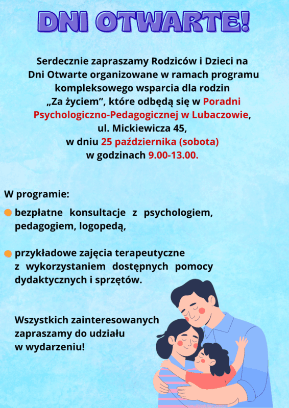 DNI OTWARTE W PORADNI PSYCHOLOGICZNO – PEDAGOGICZNEJ! Opublikowano w dniu 22 października 2025 Autor: Jolanta Bojarska