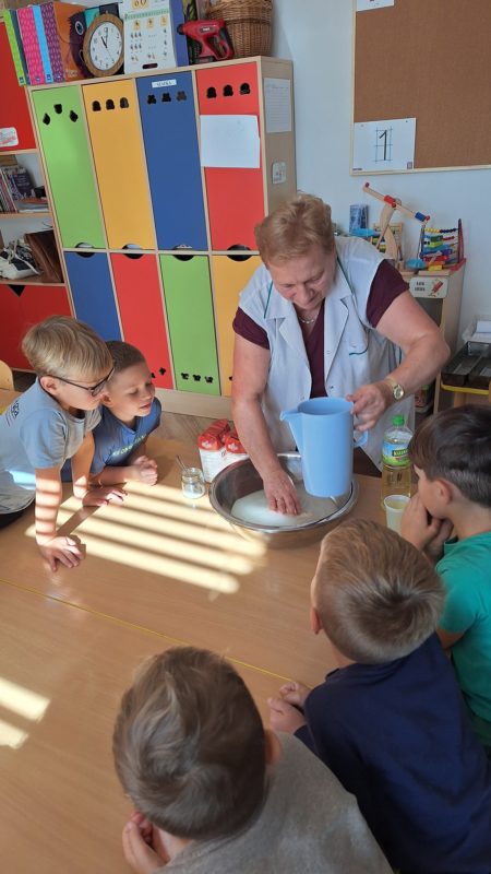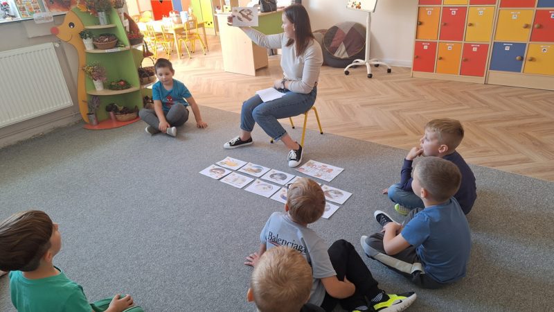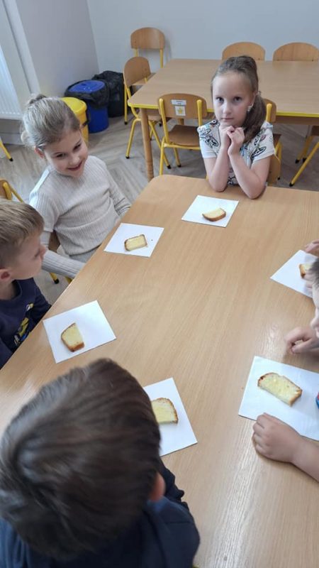 Dzieci uczestniczyły w zajęciach, podczas których poznały różne rodzaje pieczywa, dowiedziały się, skąd pochodzi mąka oraz jak wygląda proces wypieku chleba. Przedszkolaki mogły dotknąć i powąchać ziaren zbóż, a także spróbować niektóre z nich. Na koniec zajęć odbyła się wyczekana degustacja naszych wyrobów.