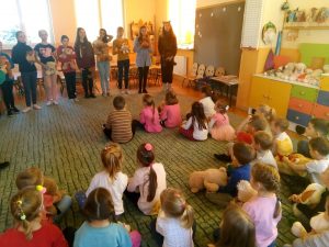 W dniu 30 listopada dzieci z naszego przedszkola uroczyście obchodziły Światowy Dzień Pluszowego Misia. W naszym przedszkolu obchodzenie tego święta to już tradycja. Tego dnia dzieci przyszły do przedszkola ze swoimi ulubionymi i kochanymi pluszakami. Bardzo miłą niespodzianką były odwiedziny pani Marii Wach wraz z uczennicami ze Szkoły Podstawowej nr 2 Lubaczowie. Dla dzieci w tym dniu Pani Maria przygotowała wiele atrakcji: ćwiczenia gimnastyczne z misiami, zabawy, konkursy, poznały historię święta, bawiły się przy piosenkach, Na zakończenie „misiowych urodzin” wszyscy zrobiliśmy pamiątkowe zdjęcie. . Wspólne działania, miła atmosfera i wzajemny uśmiech sprzyjały integracji .To był na prawdę wesoły dzień, pełen misiowych wrażeń.