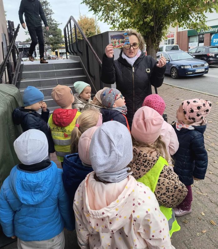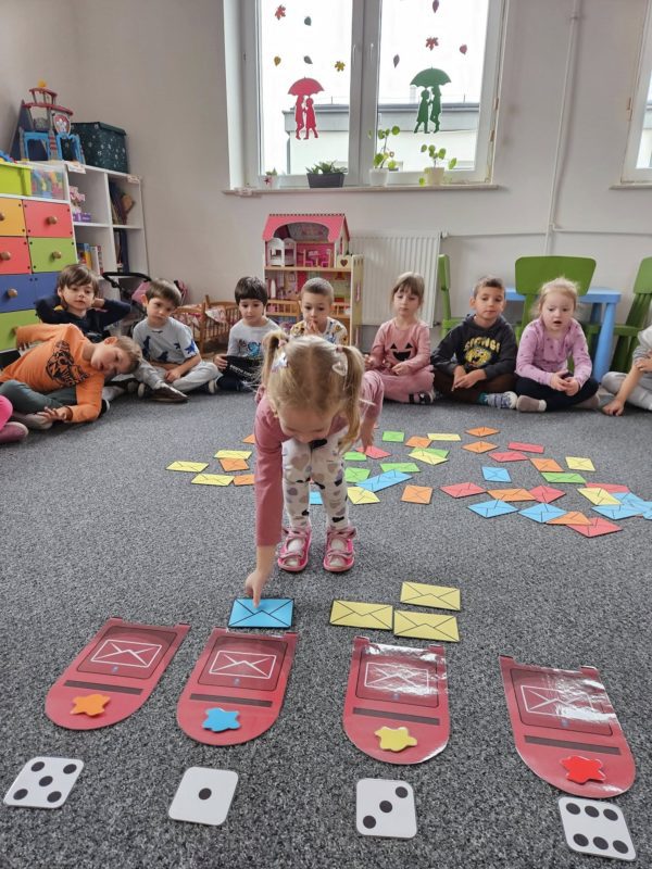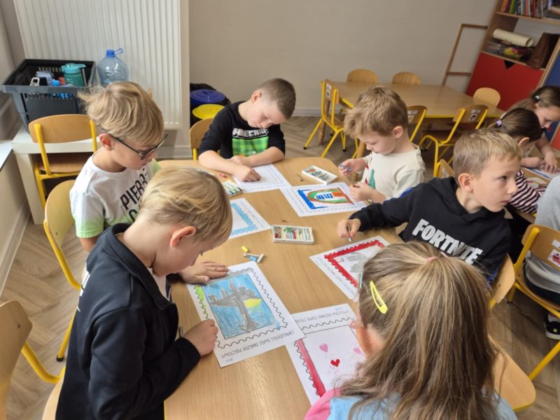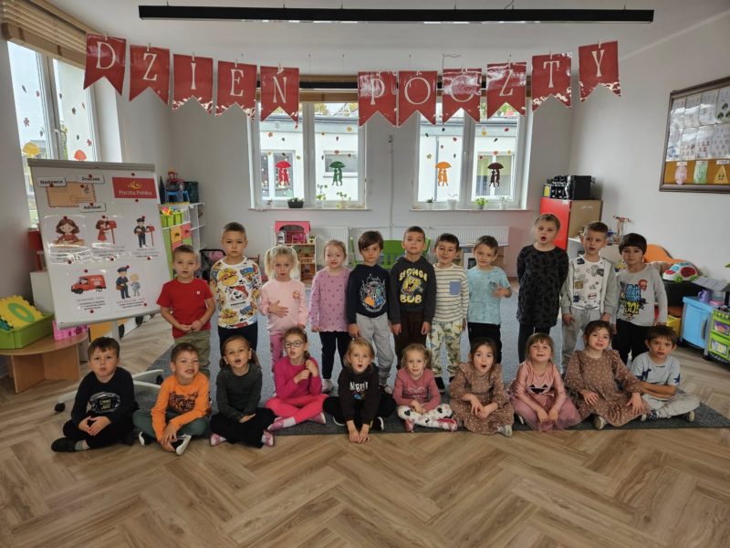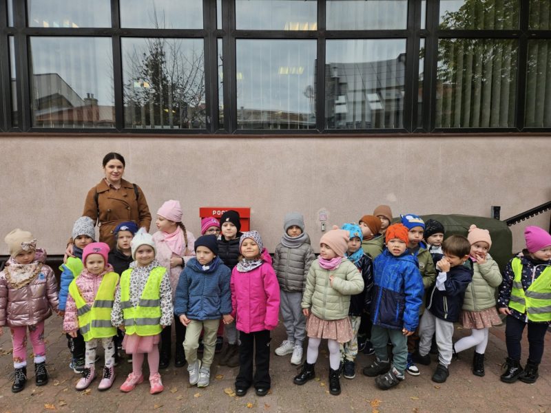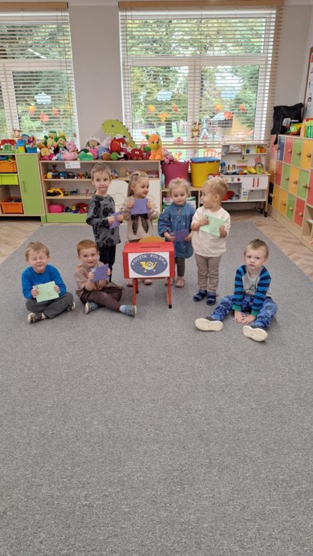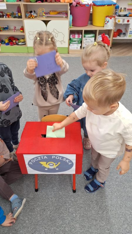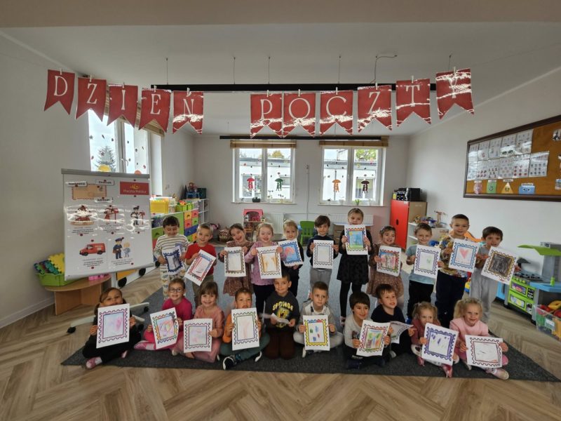 Dzieci z ciekawością poznawały drogę listu – od nadawcy do adresata, dowiedziały się, na czym polega praca listonosza i jak ważną rolę odgrywa w codziennym życiu. Z entuzjazmem projektowały własne znaczki, a następnie udały się do urzędu pocztowego w Lubaczowie, by samodzielnie wysłać przygotowane listy.