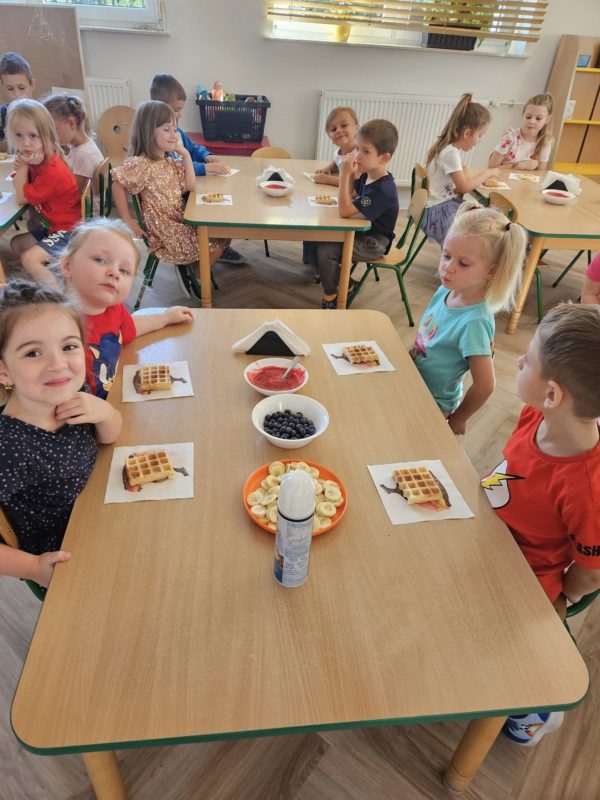 Nasze przedszkolaki świętowały ten dzień w najlepszy możliwy sposób – bawiły się, tańczyły i śmiały do woli! Były gry ruchowe, wspólne zabawy integracyjne, a na zakończenie czekała na dzieci słodka niespodzianka – pyszne gofry, które wywołały uśmiech na każdej buzi. ![]()