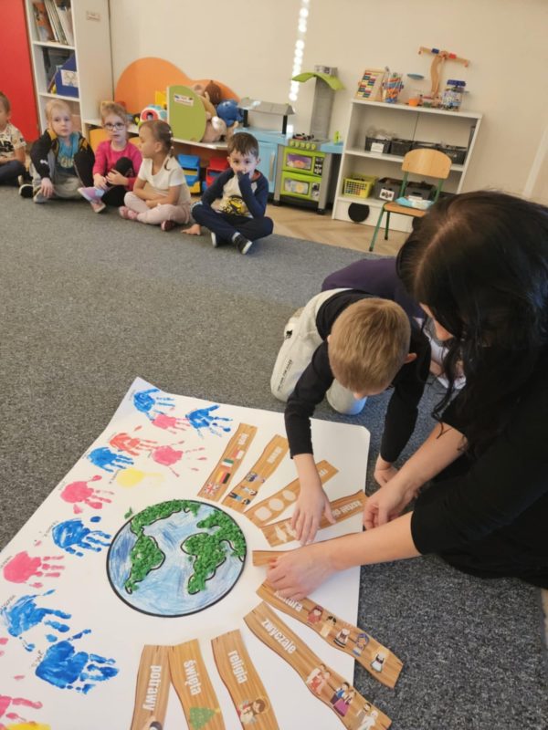 W ramach Dni Edukacji dla Wszystkich (Ośrodek Rozwoju Edukacji) nasze przedszkolaki wzięły udział w wyjątkowych zajęciach poświęconych tolerancji i różnorodności. Rozmawialiśmy o tym, jak piękny i zróżnicowany jest świat oraz że każdy z nas może się różnić – wyglądem, kolorem skóry, kulturą, językiem czy religią – a mimo to wszyscy zasługujemy na szacunek i akceptację. ❤️🤝