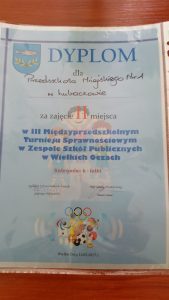 W dniu 12 maja w turnieju sprawnościowym „SPRAWNY PRZEDSZKOLAK” zorganizowanym przez ZSP w Wielkich Oczach wzięły udział dwie grupy wiekowe: 5 i 6-latki. Celem tego spotkania było: rozwijanie sprawności fizycznej dzieci, tworzenie atmosfery współpracy i współdziałania w zespole, poznawanie i przestrzeganie zasad zdrowej rywalizacji sportowej, rozwijanie odporności emocjonalnej w sytuacjach porażki lub zwycięstwa oraz poznawanie i stosowanie zasad właściwego dopingu. Rozgrywki odbyły się na dwóch poziomach wiekowych: dzieci 5-letnie i dzieci 6-letnie. Pięciolatki przywiozły do swojego przedszkola puchar i dyplom za zdobycie pierwszego miejsca, zaś sześciolatki za zdobycie drugiego miejsca. Dzieci doskonale się bawiły i starały się przestrzegać reguły w sportowych zawodach. Jak się okazało nie obeszło się bez kontuzji i niezbędna była pomoc medyczna. Na szczęście były to tylko lekkie otarcia, z którymi świetnie poradziła sobie nasza pielęgniarka.