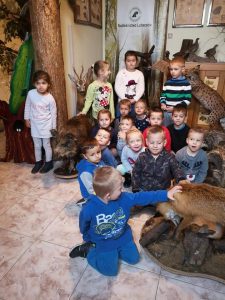 Dzieci z grupy V dnia 13 listopada uczestniczyły w „Lekcji przyrody”w Nadleśnictwie w Lubaczowie połączoną z akcją „Cała Polska czyta dzieciom”. Na zajęciach przyrodniczych dzieci miały możliwość obejrzenia zwierząt występujących w polskich lasach oraz poznania ich zwyczajów. Przy okazji dzieci poznały ogromną wartość pracy leśnika. Dziękujemy pani Małgosi za poświęcony nam czas oraz przekazanie swojej wiedzy.