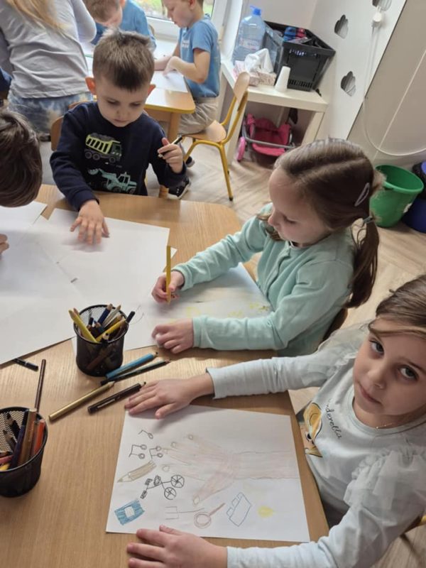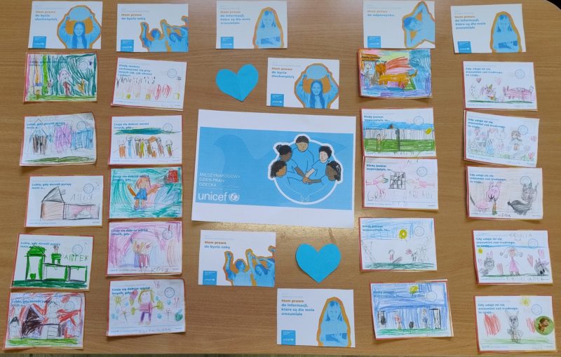 Wspólnie wykonaliśmy także aktywność UNICEF – „Prawa dziecka na pocztówkach”, podczas której dzieci ilustrowały wybrane artykuły Konwencji, dzieląc się swoim spojrzeniem na to, co jest dla nich najważniejsze.
