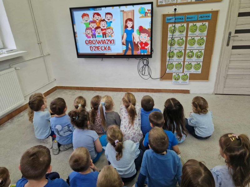 Dzieci obejrzały bajkę edukacyjną angażującą najmłodszych, która w przystępny sposób pokazywała, jak prawa dziecka funkcjonują w codziennych sytuacjach.