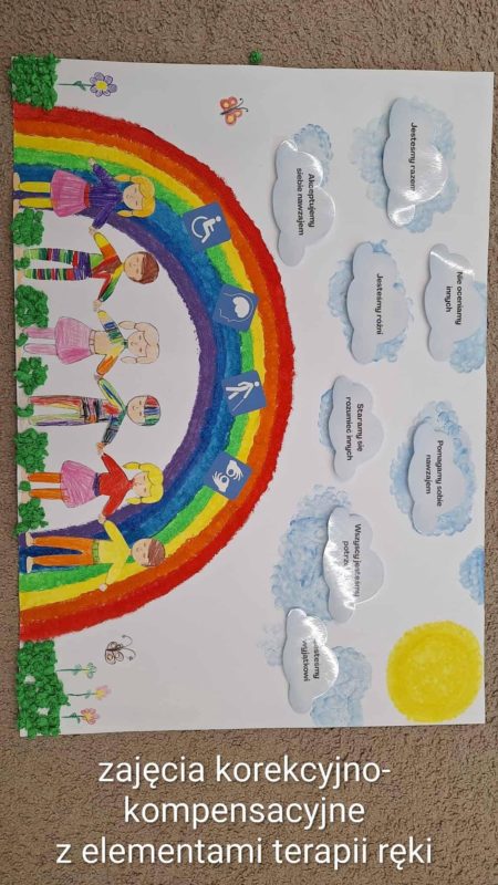 Każda grupa stworzyła wyjątkową pracę — inną, niepowtarzalną i pełną dziecięcej wyobraźni. Tak jak w edukacji włączającej, różnorodność okazała się naszą siłą — bo choć każdy tworzył na swój sposób, razem stworzyliśmy coś naprawdę wyjątkowego. 🌈