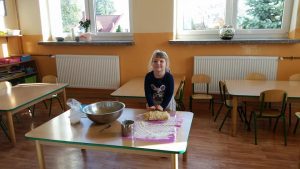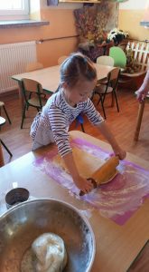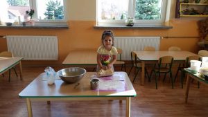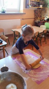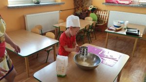 Nauka pieczenia – gr. II Opublikowano w dniu 20 października 2018 Autor: Małgorzata Broź Skąd się bierze mąka i co możemy z niej zrobić? Czterolatki uczyły się piec drożdżowe ciasteczka.