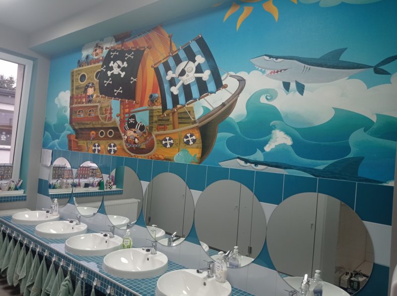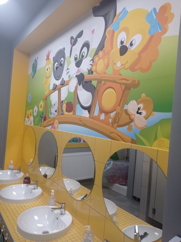 Z radością i satysfakcją informujemy o posiadaniu nowo wyremontowanych łazienkach przeznaczonych dla dzieci. Z pełnym przekonaniem pragniemy podkreślić, że rezultat prac jest znakomity. Wystrój został zaaranżowany w sposób estetyczny i piękny, a jednocześnie pozostaje w pełni funkcjonalny i ergonomicznie dostosowany do potrzeb najmłodszych użytkowników, co realnie podnosi standardy higieniczne oraz komfort codziennego korzystania z obiektu.