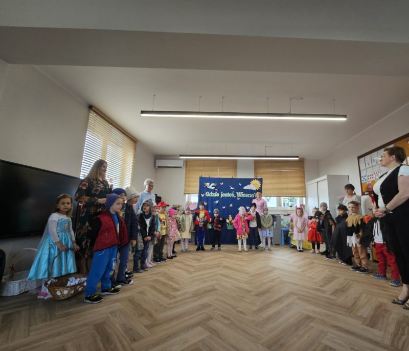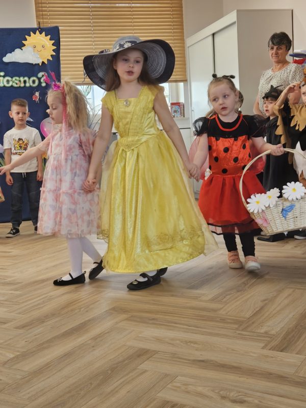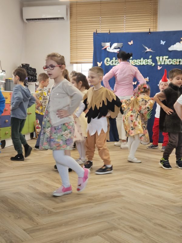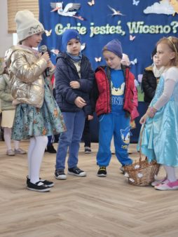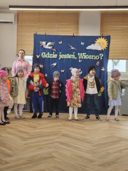 Grupa III „Tropiciele” zaprezentowała teatrzyk pt. „Gdzie jesteś, Wiosno?”, w którym mali artyści wyruszyli na poszukiwanie wiosny, przedstawiając jej pierwsze oznaki.