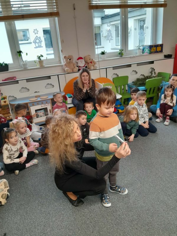 Grupę III i V odwiedziły Panie z Powiatowego Centrum Pomocy Rodzinie w Lubaczowie- Pani Marzena Witkoś oraz Pani Anna Hass. Przedszkolaki z uwagą czekały na zaproszonych Gości.
