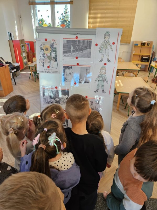 Podczas zajęć dzieci obejrzały film edukacyjny „Powstańcze Dziewczyny”, dzięki któremu poznały niezwykłe historie kobiet – między innymi sanitariuszek, łączniczek oraz kucharek polowych, które z odwagą, oddaniem i sercem wspierały walczących o wolność Polski.