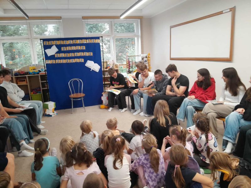 We wrześniu przypada Ogólnopolski Dzień Głośnego Czytania. Także podczas naszego spotkania nie zabrakło wspólnego czytania pięknych bajek – oczywiście z podziałem na role – „Naucz się rozumieć siebie”, „Zoo” oraz „Marsjanie na leśnej polanie”. Licealiści i przedszkolaki świetnie ze sobą współpracowali. Niestety wszystko, co dobre szybko się kończy. I tak było tym razem.