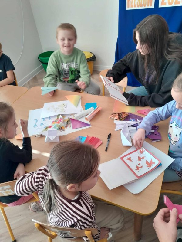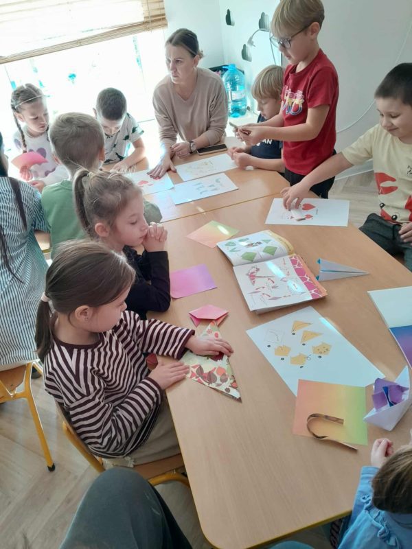 Podczas spotkania wszyscy świetnie się bawili. Przedszkolaki miały okazję poznać czym jest ta fascynująca sztuka i samemu złożyć wiele papierwych modeli, które były dostosowane do ich wieku i możliwości rozwojowych.