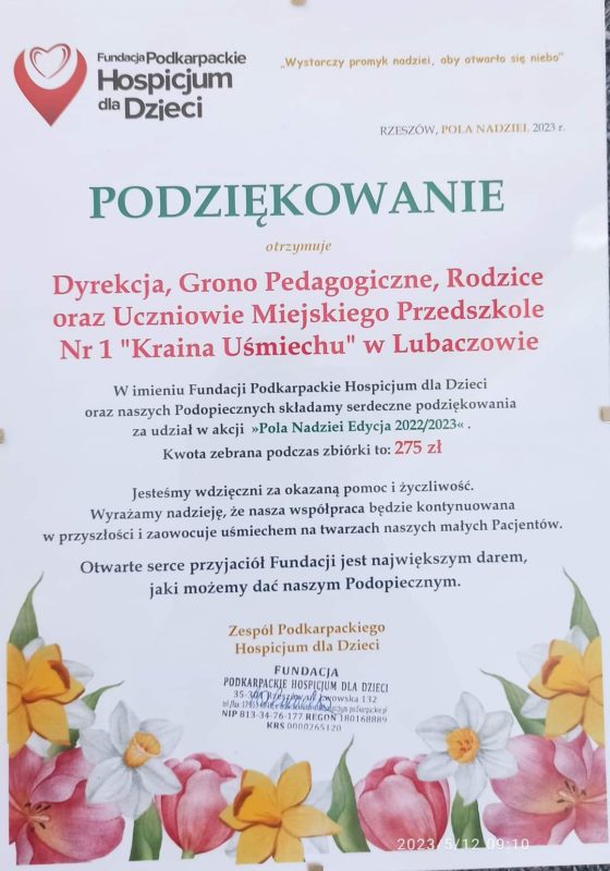 💛💛💛Jeszcze raz dziękujemy wszystkim, którzy włączyli się do akcji „Pola nadziei” wspierającej Hospicjum Dla Dzieci w Rzeszowie 💛💛💛