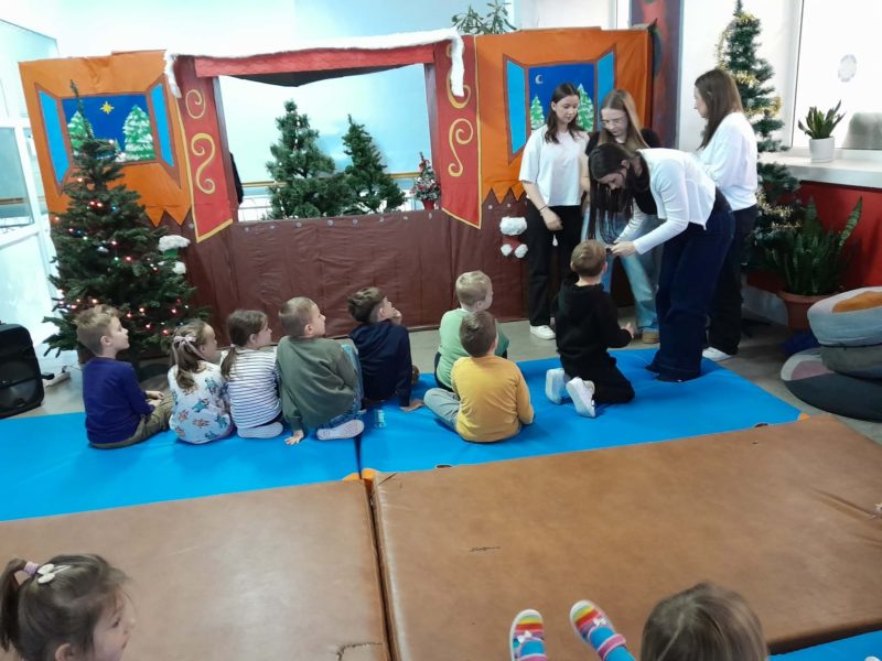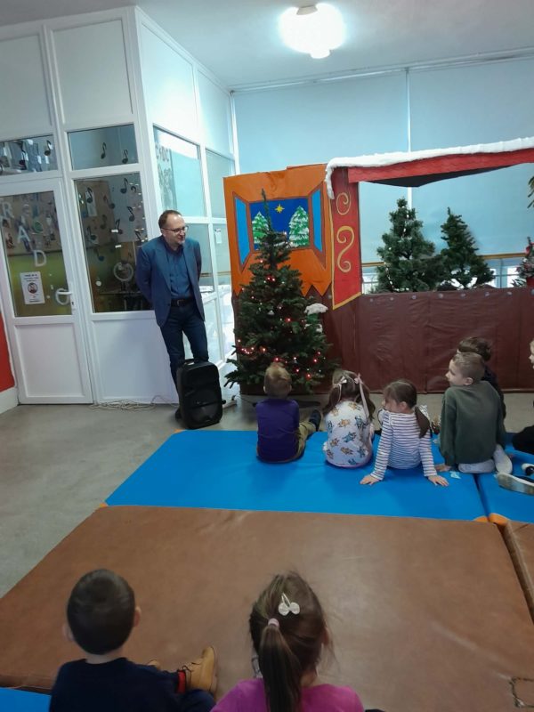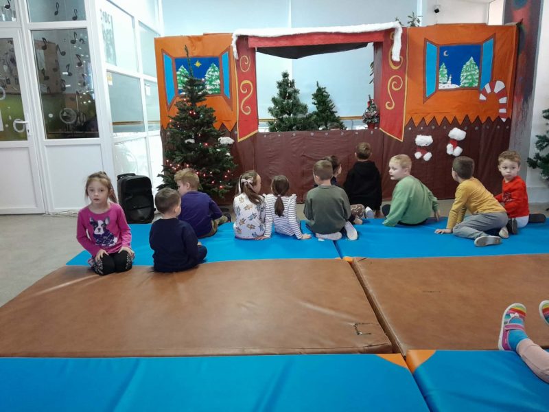 Dyrektor Liceum wraz z licealistami bardzo ciepło nas przyjęli. Na początek młodzież przygotowała dla nas wspaniałe przedstawienie „Nie martw się, Misiu Tulisiu”. Później było wspólne malowanie bombek choinkowych oraz robienie łańcuchów. Na koniec przedszkolaki przystroiły wykonanymi ozdobami dwie przygotowane choinki🙂