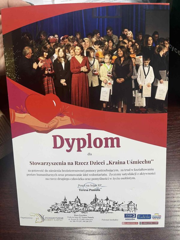 Wśród wyróżnionych znalazło się także nasze Stowarzyszenie na Rzecz Dzieci „Kraina Uśmiechu”.