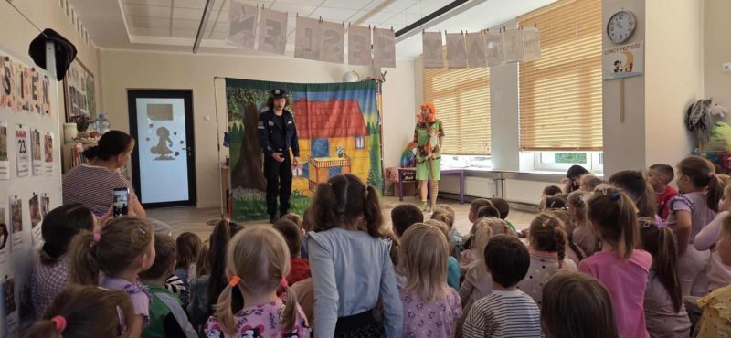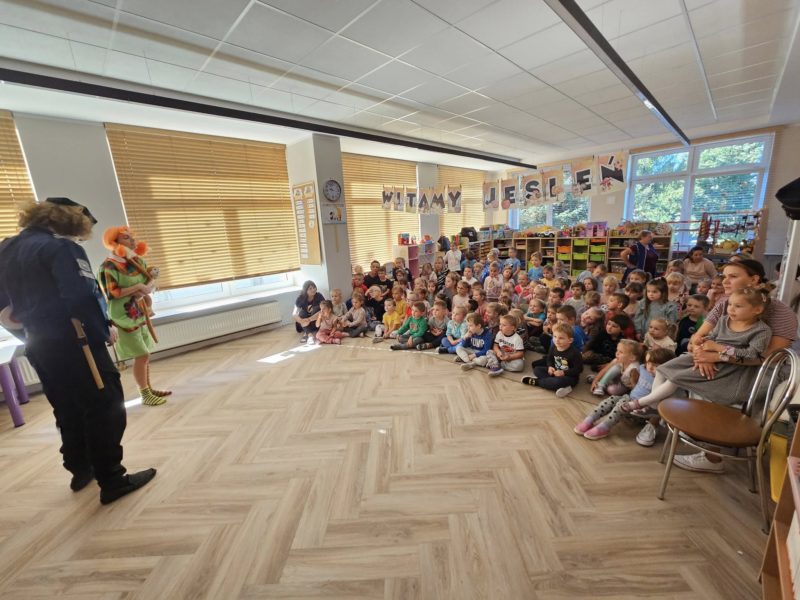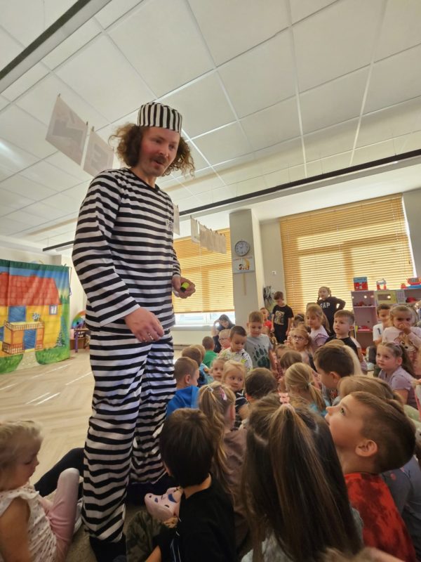 Spektakl nie tylko bawił, ale także uczył – dzieci dowiedziały się, jak unikać zagrożeń i jak właściwie reagować, gdy pojawiają się niebezpieczne sytuacje. Wspólne przeżycia sprawiły dzieciom ogromną radość, a entuzjastyczne reakcje i gromkie brawa były najlepszym podziękowaniem dla artystów. ![]()