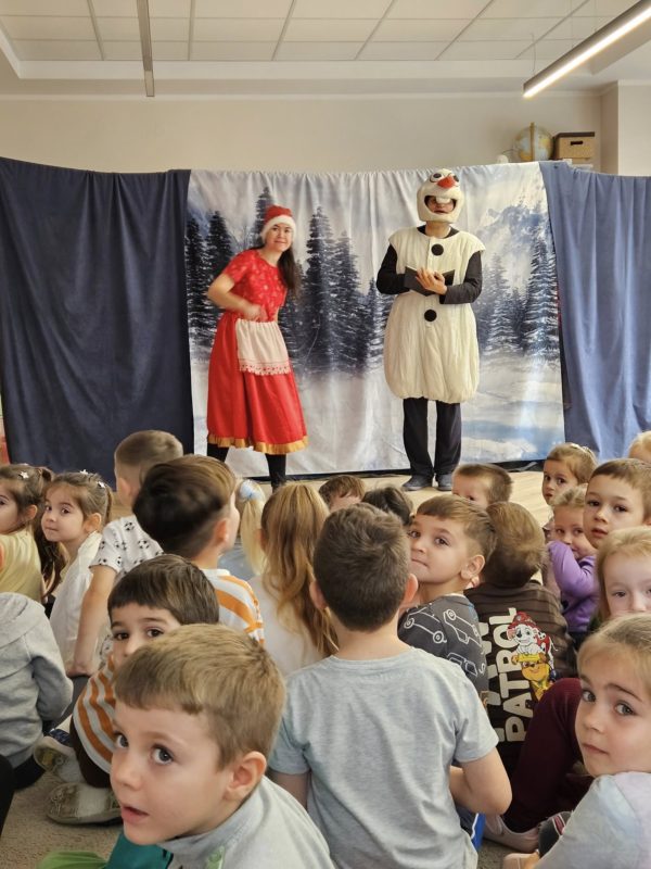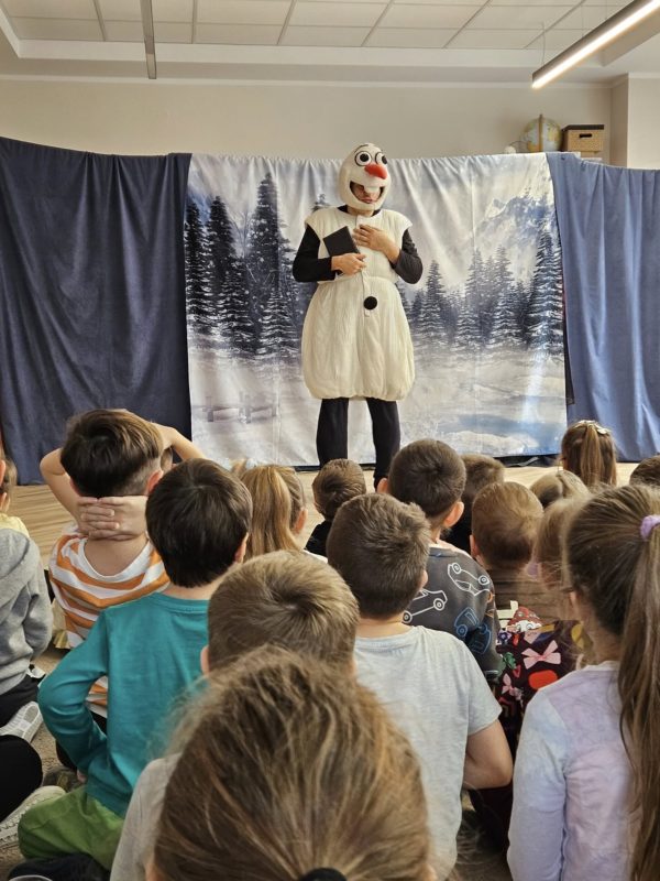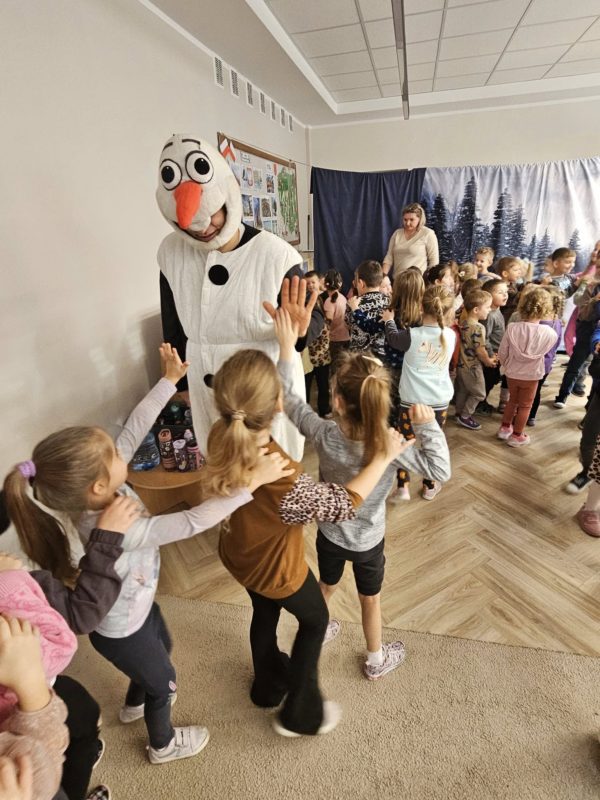 Przedstawienie przeniosło dzieci do magicznego, zimowego świata pełnego humoru, emocji oraz bożonarodzeniowych akcentów. Mali widzowie z ogromnym zaangażowaniem śledzili przygody Olafa i chętnie włączali się w przebieg spektaklu – odpowiadali na pytania, wykonywali zadania oraz wspierali bohatera w jego świątecznych wyzwaniach.