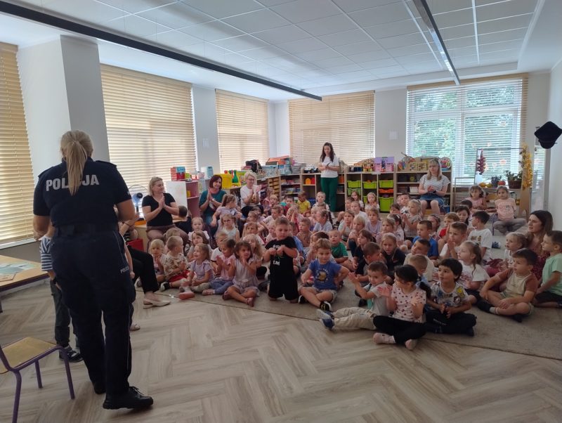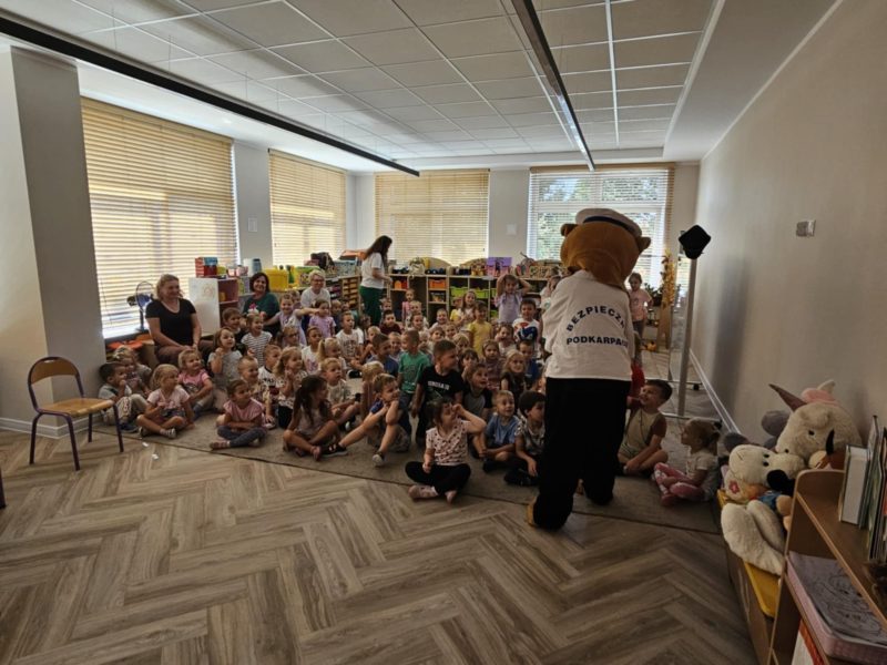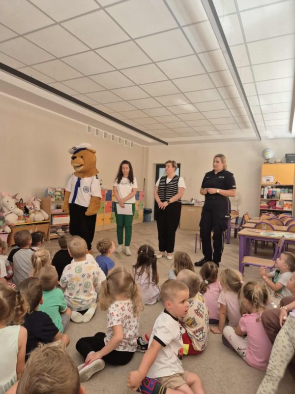 Gościliśmy w placówce policjantkę z Komendy Powiatowej Policji w Lubaczowie, która wraz z policyjną maskotką – uroczym misiem – opowiedziała dzieciom o zasadach bezpieczeństwa i ochrony przed przemocą.