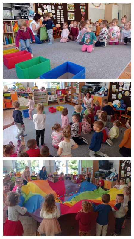 „W krainie kolorów” Opublikowano w dniu 19 maja 2023 Autor: Karolina Kolasa Dzieci z grupy I ,,Łowcy Przygód” poprzez gry i zabawy poznawały i utrwalały nazwy kolorów podstawowych. Było ciekawie, wesoło i kolorowo.