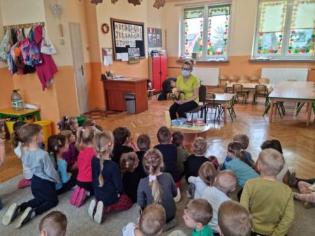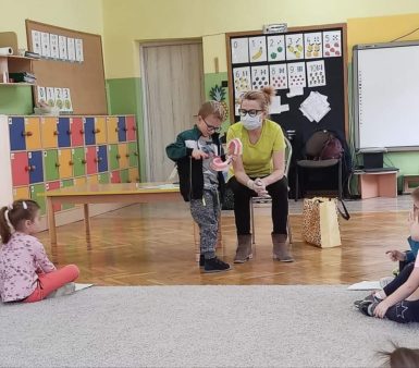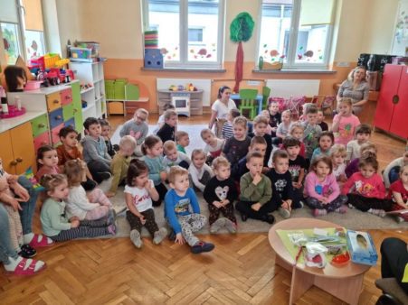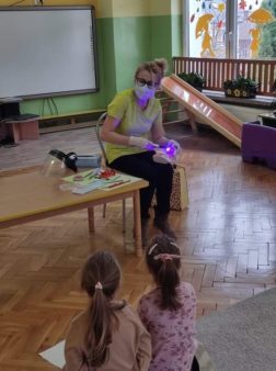 Dziś w naszym przedszkolu odbyło się spotkanie z lekarzem stomatologiem Panią Małgorzatą Gorycką. Zaproszony gość opowiedział dzieciom jak dbać o zęby i higienę jamy ustnej. Pani stomatolog zwróciła szczególną uwagę na prawidłowe odżywianie oraz na specjalnych rekwizytach pokazała, z czego składa się ząb i co należy zrobić, gdy zaczyna chorować. Wyjaśniła przedszkolakom co robić, aby zęby jak najdłużej pozostały zdrowe. Dzieci były bardzo zainteresowane tematem, a ta wizyta z pewnością na długo zostanie w naszej pamięci 🙂 🙂 🙂