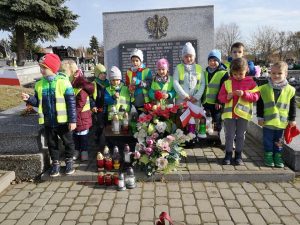 Wizyta na cmentarzu komunalnym ku pamięci poległym żołnierzom. Czcimy pamięć dla tych, którzy walczyli i polegli za Ojczyznę.W przedszkolu uczymy dzieci okazywania szacunku osobom, które od nas odeszły, pokazujemy także, jak ważne jest zachowanie o nich pamięci.