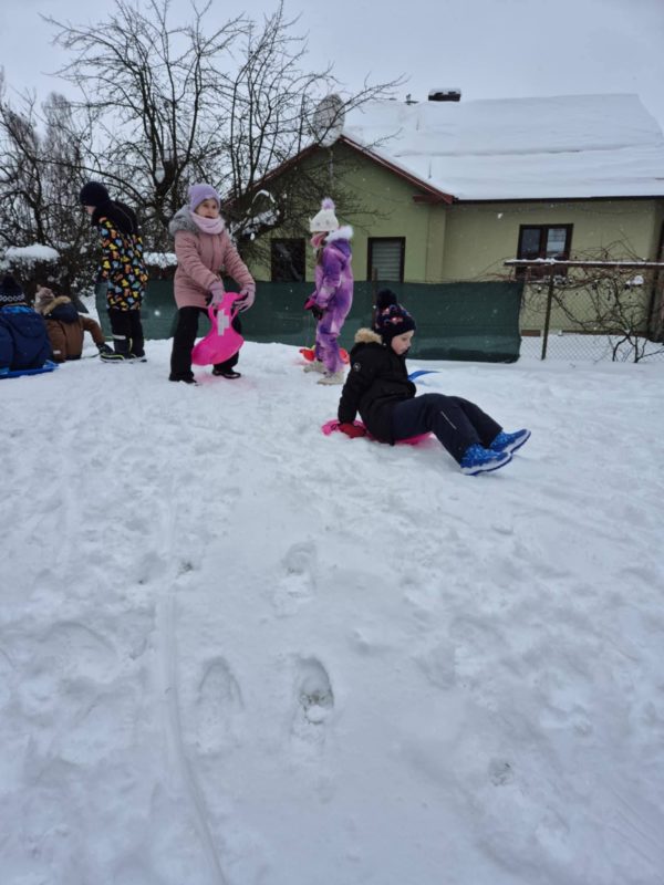 Dzieci z wielką radością korzystały z uroków zimy, doskonaląc sprawność ruchową, ucząc się zasad bezpieczeństwa oraz czerpiąc radość ze wspólnej zabawy. Takie aktywne spędzanie czasu to nie tylko zdrowie, ale też wspaniałe emocje i niezapomniane wspomnienia.
